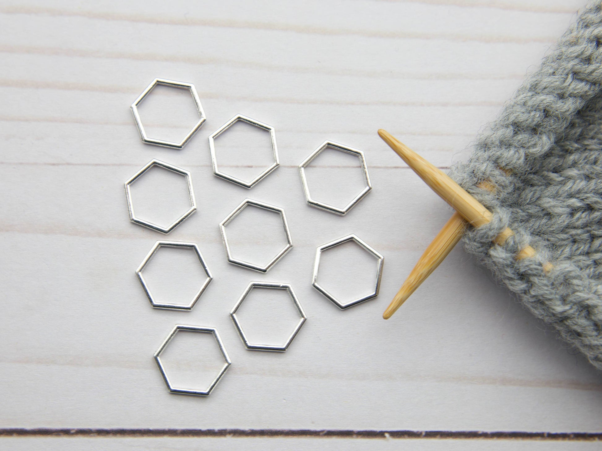 These cute silver hexagon stitch markers help you keep track of your projects while knitting away. They come in a pack of 8.
